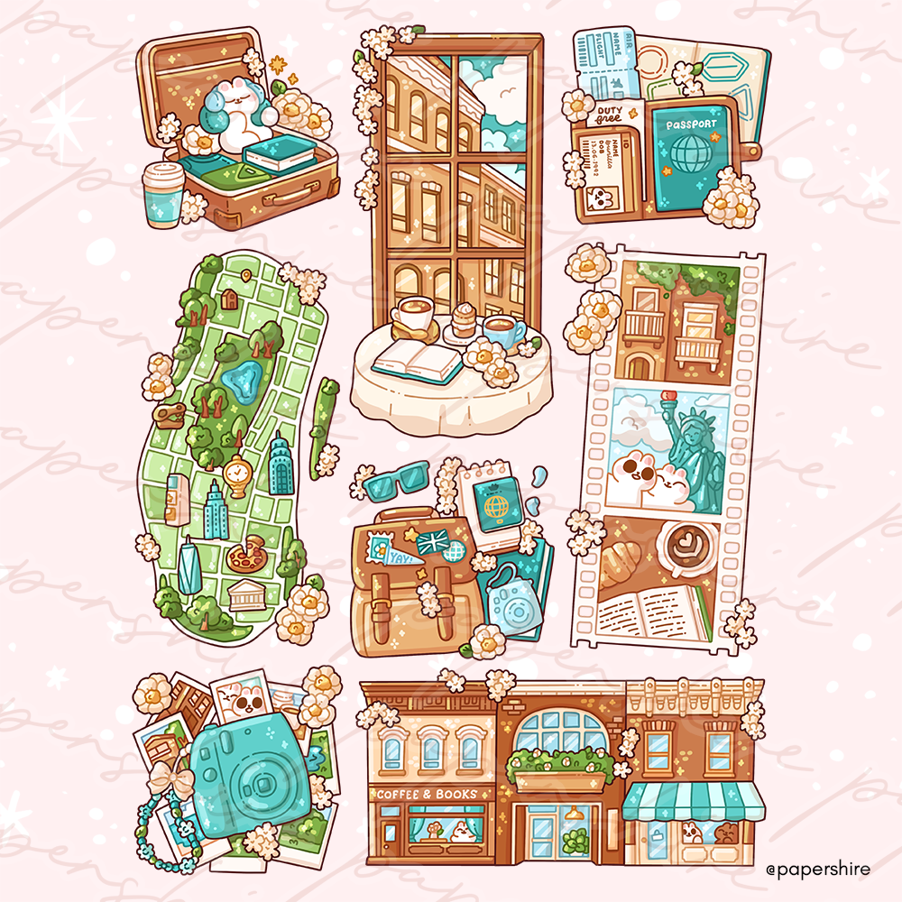 A full kit City Getaway themed coordinated doodles, perfect for bullet journals!