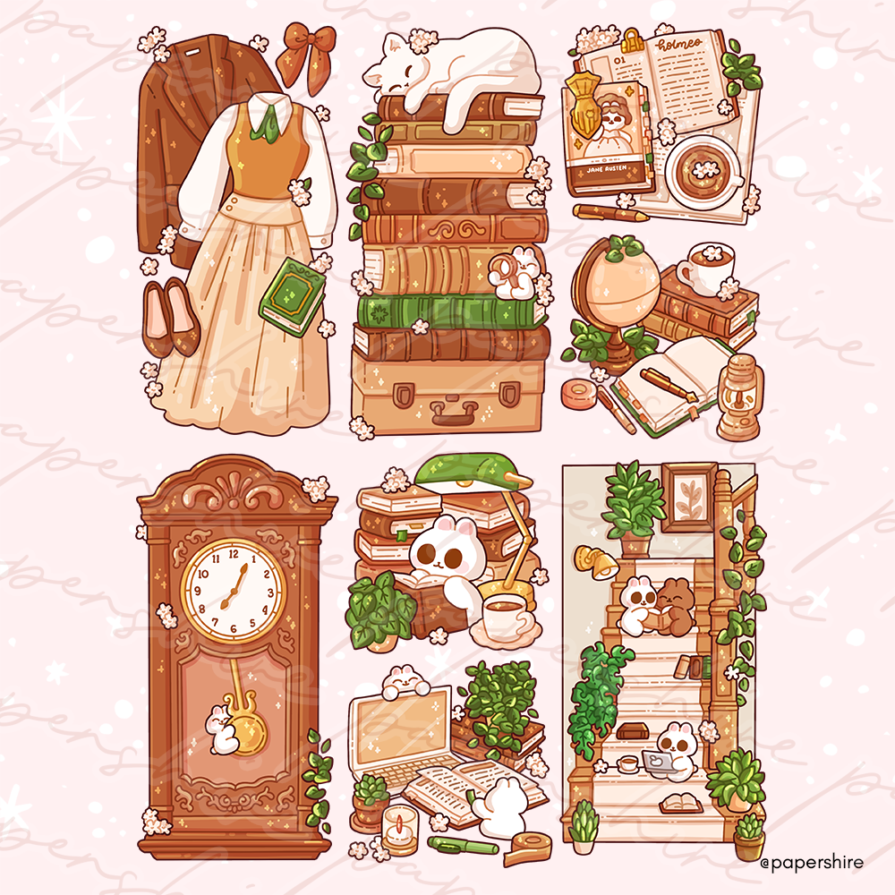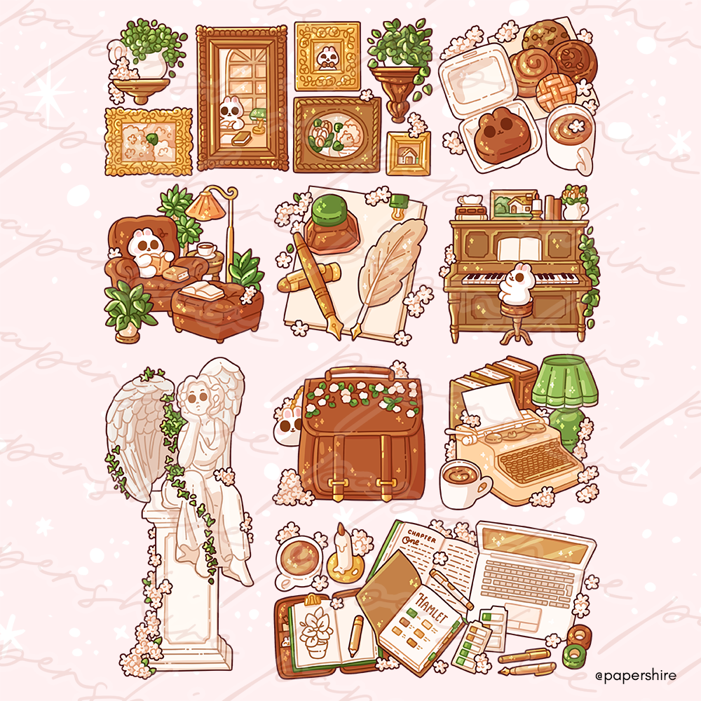 A full kit Dark Academia themed coordinated doodles, perfect for bullet journals!