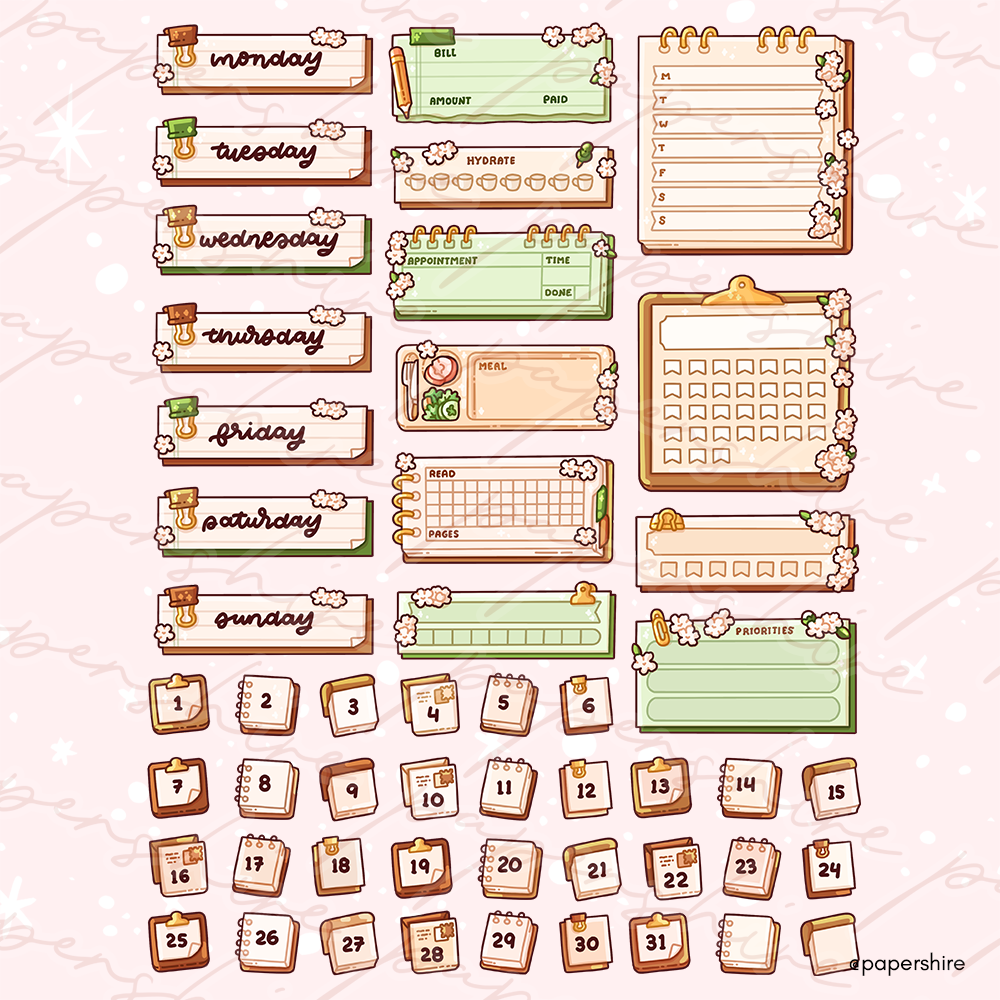 Includes 18 doodles 30 functionals, 40 day and dates, 2 washi strips and a wallpaper measuring 3842x2160px.