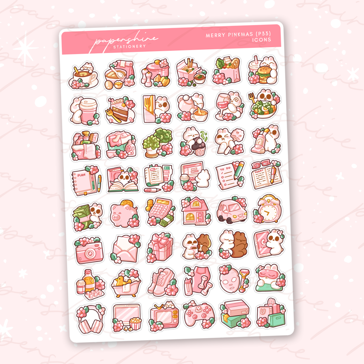 1 half sheet of 48 matching icons for Merry Pinkmas patreon kit doodle stickers.