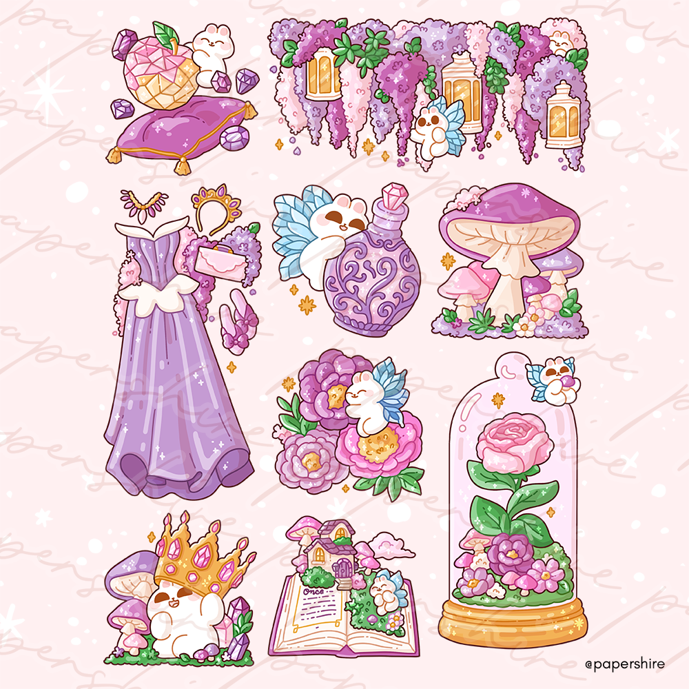 A full kit Fairytale themed coordinated doodles, perfect for bullet journals!