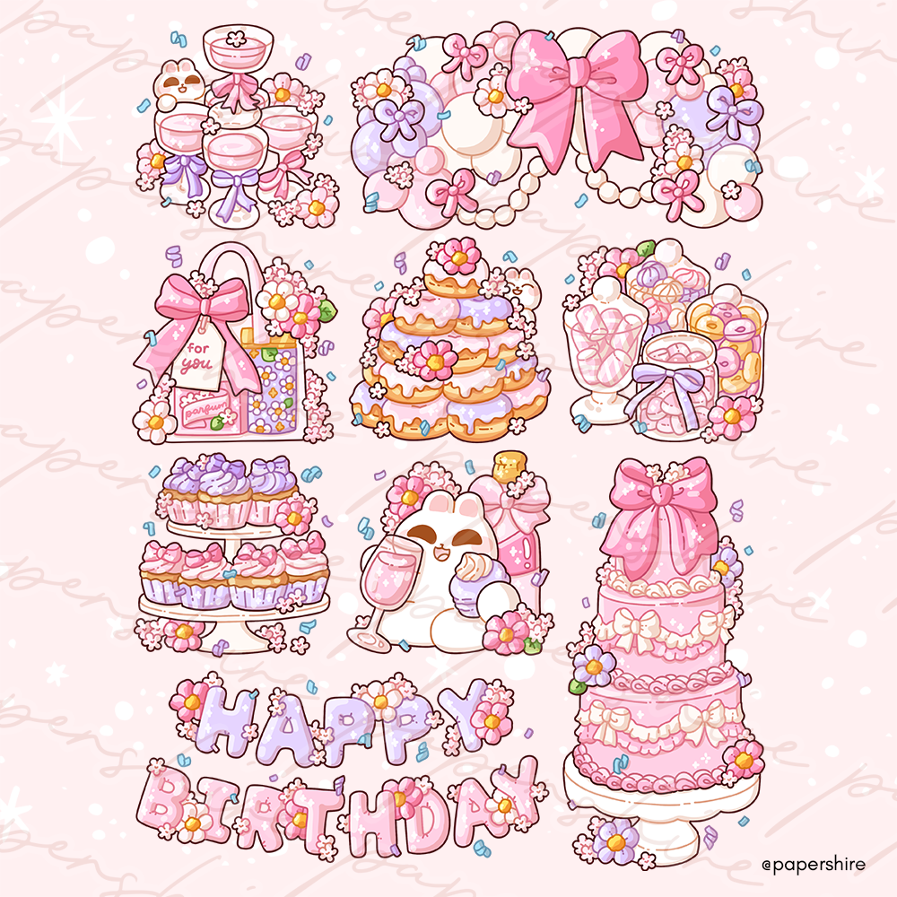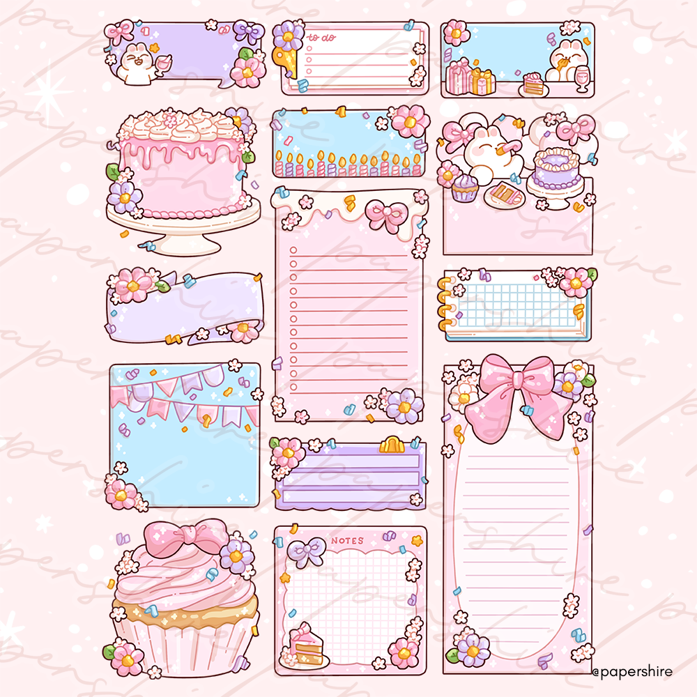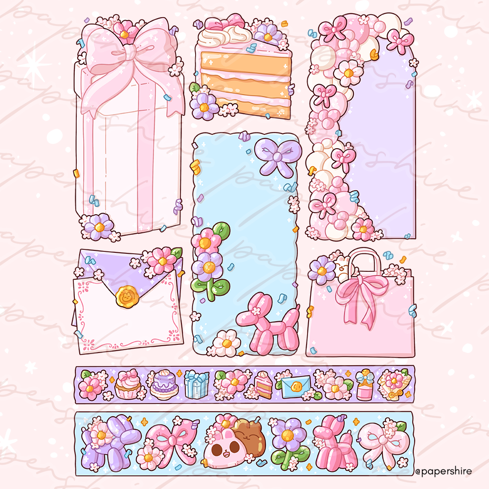 A full kit Birthday Party themed coordinated doodles, perfect for bullet journals!